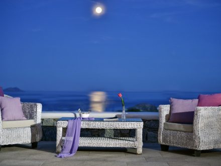 Villa Kanala, is located in Ano Diakoftis in the area of Ornos bay, a short distance from the sea overlooking the beautiful view of Little Venice in Mykonos.