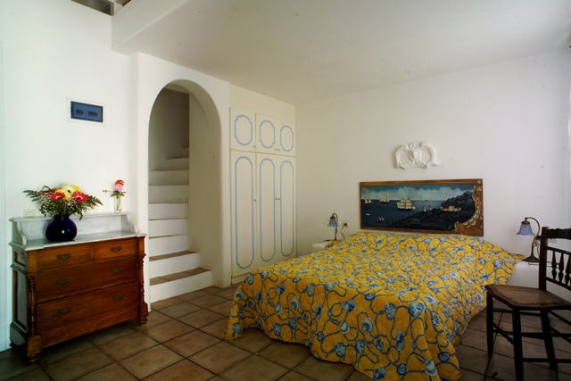 Two bedrooms: one ground floor, one upper floor (the master-bedroom), both with double bed, en suite bathroom and splendid views from balcony. Along side main house is the large 2 level guest house which sleeps 4 persons and comprises: mezzanine level “patari” with two singles beds, & opens onto huge terrace with panoramic view; and lower (ground) floor with double bed, small kitchen corner and bathroom with shower. Another next-door guestroom has double bed, an extra single bed, small kitchen-corner and bathroom with shower.