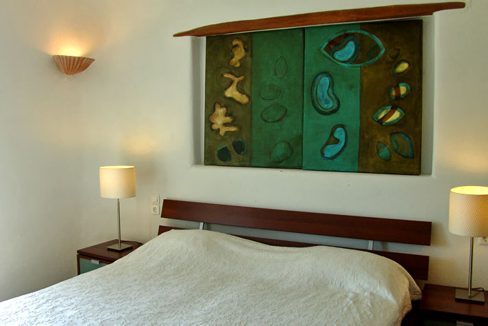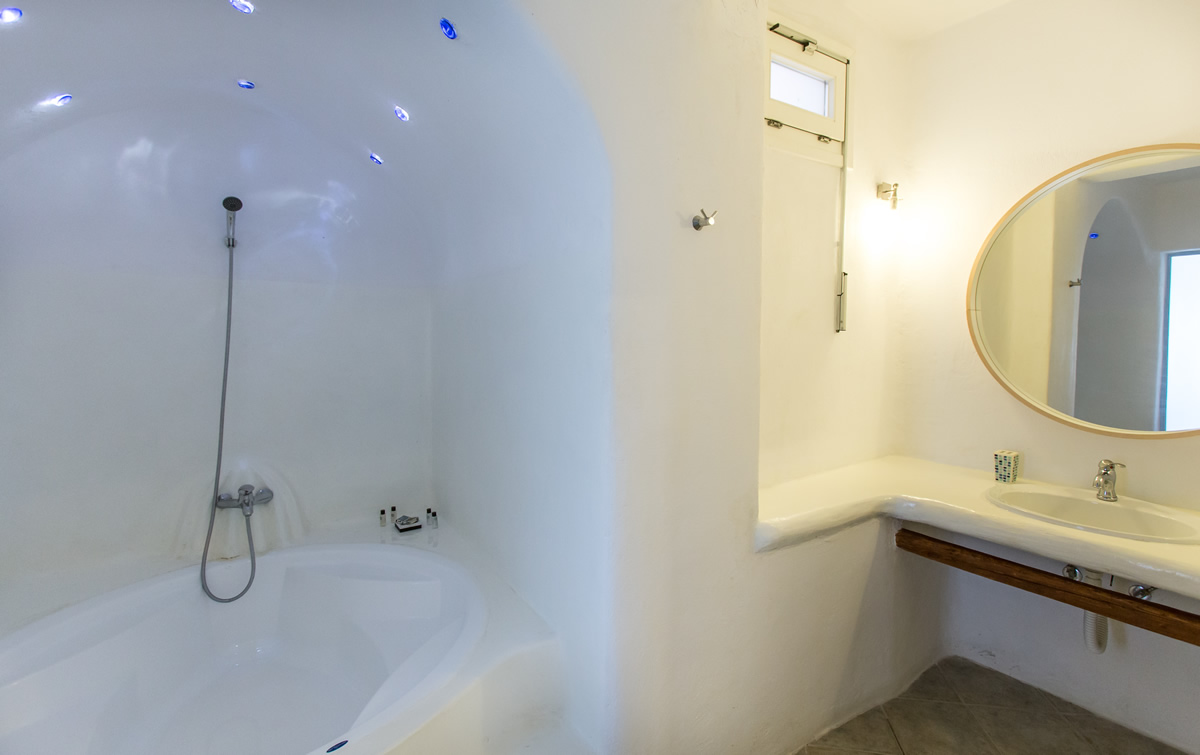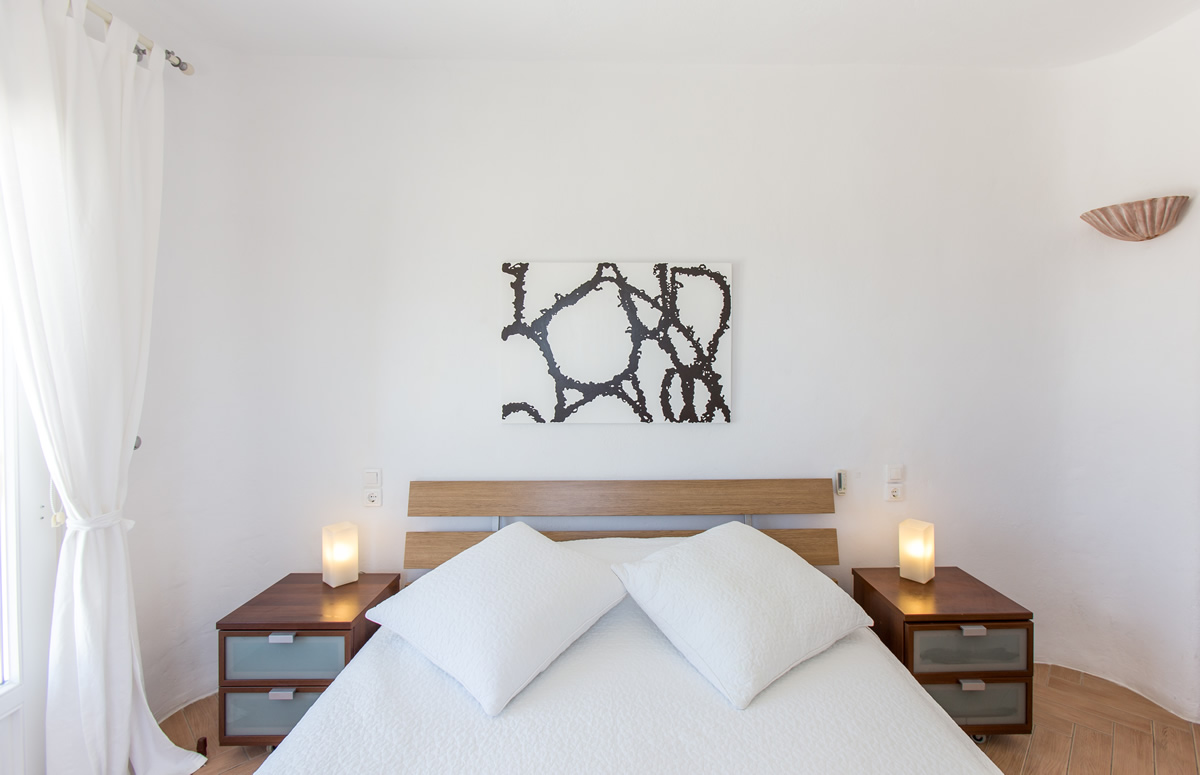 Just above the renowned beach of Super Paradise, lies the private complex that comprises three villas. The first of which, has its own infinity pool with clean view of the Aegean Sea with built-in spa, separate entrance and private outdoor area where a big dining table, a BBQ, a big bar and a state of the art sound system lie.